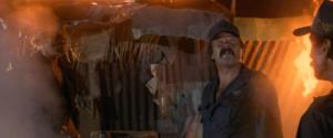 With a face covered in soot, he stands before Babyfat and looks disappointed when he realises he has somehow lost his sour balls on the leap from the helicopter to the train. Oh, Tony, what are you like!