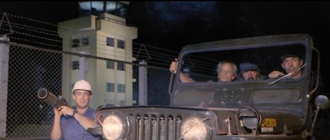 Meantime Tony is sneaking around outside in the warehouse and unbeknownst to him he has set off a sensor that raises the intruder alarm, with the alarm signalling the gang turn on yet another device – a table-top CCTV camera: