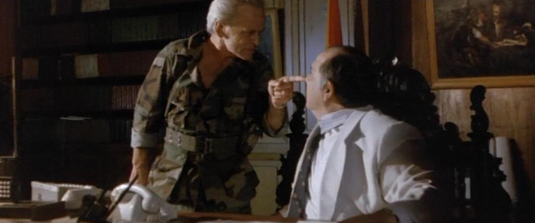 The next day Tony is relaxing by the pool with Elisabeth Furst, asking her about her kidnappers. But Elisabeth seems keener on finding out whether Tony is doing the bump with Kenny; if you trusted her you’d think she was jealous when she says of Kenny: “She’s not fat – and she’s no baby.” But Elisabeth is not to be trusted.