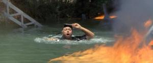 Tony dives into the pool to take on his assailant but he seems to be at a disadvantage as the guy has a gun, a knife and breathing apparatus at his disposal – despite all of this he seems to be trying to escape Tony via a vent in the side of the pool. Tony doesn’t let him though and they have an extended underwater fight, which is really quite spectacular.