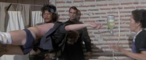 The fight continues and Hansi eventually manages to throw Tony off the tower. He imagines it’s all over but Tony grabs onto a wire and is looking for a way down to safety when the wire breaks and he has to hastily shimmy down onto a lower floor. Let’s not even trouble ourselves with the fact that this is impossible, it would just detract from the enjoyment of the film. So, Tony is on a lower floor – he doesn’t make his escape though, he heads straight back up the tower to finish off what he started with Hansi, beating him to a pulp and asking him where the money is. Why bother asking about Pendergast when there’s $1M involved, eh?