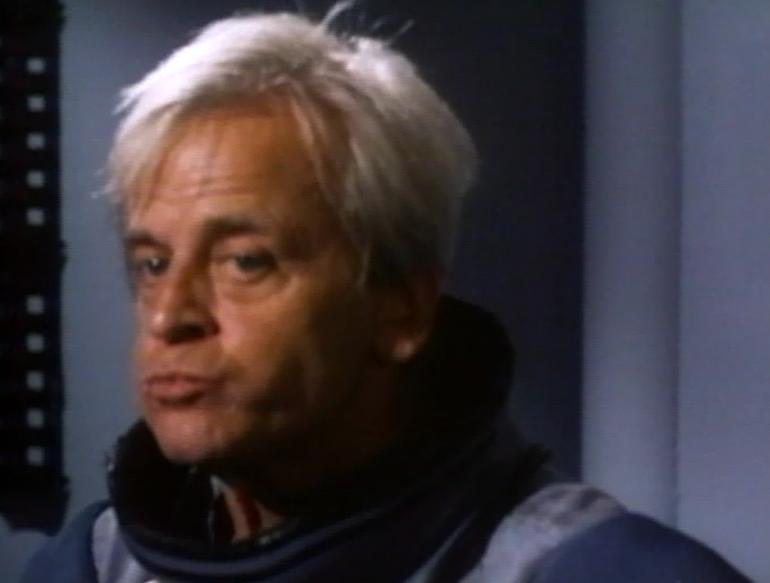 The best thing about this film is the non-diegetic sandwich eating sequence – okay, maybe my usage of the word diegesis is not strictly correct here, but I’m sure the sandwich eating is not supposed to occur within the narrative and maybe the director hoped we wouldn’t notice the incongruous nature of it; it’s a Klaus add-on. Klaus looks so amused by the fact that he’s in what he would refer to as ‘a heap of s***’ that he suddenly produces what appears to be a takeaway sandwich in a paper bag (hey! they’re in space and all that but maybe they have a tuckshop on board, who knows?) and starts munching on it whilst faithfully reciting the awful text he’s been given. He carries on talking through a mouthful of food whilst also looking more than somewhat amused.
