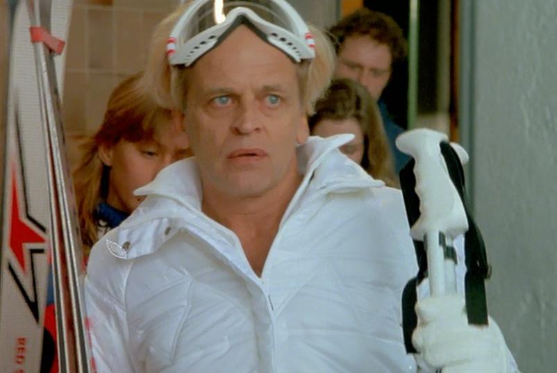 Before he will take on the job, The Soldier Ken Wahl wants to know if the Russians are really behind the threat. The Director of the CIA does not authorise anything but lets slip that Dracha, a Russian KGB agent, is allegedly on a skiing vacation in St Anton, Austria. Although he’s a loyal KGB agent, Dracha (Klaus Kinski) has always been straight with the US in the past, so The Soldier Ken Wahl heads off to St Anton to see if he can get any information out of Dracha. Have they not heard of telephones, these special agents?