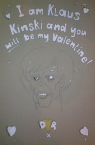 For Valentine’s this year, I got a card purported to be from Klaus Kinski, ahem! It arrived at the same time as my boyfriend Dave. Odd that…