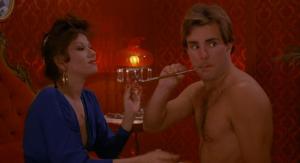It was my first feature, my first starring role. Chaotic? Not really. Ulli is very low key. Our crew the same. We had a lot of fun on the sets in the United States. Ulli’s wife at the time was Suzanna Love. She co-starred in the film with me. She had a young Katherine Hepburn air about her. They told me stories of their adventures in New York with Andy Warhol and Jackie Onassis… Ulli isn’t impressed by celebrity. He loves to be around genuine articles. Tom Jones who was an associate producer on Revenge also played the film’s butler. He’s Australian with a fantastic checkered past. Ulli loved being around him. Tom walked with a limp from being speared in New Guinea years earlier. Very colorful and a great friend. Ullli too, I might add. He is devilish, really. We did shoot a ton of locations. When Ulli signed Klaus there was a scramble to shoot in Mexico because we were non-union. If we wanted Klaus, it had to be Mexico. I literally left Ulli’s house after a scene and drove straight to Mexico with an older buddy Ray and Roger, the money guy. I found a realtor who had been a famous bullfighter. He knew the “Johnny Carson of Mexico” living high in the hills overlooking Tijuana and we rented his house for two days. Klaus came down in a limo with Joycelyne Lew, the makeup artist. It was my first time meeting her and she ended up snagging the maid role as Suki in the picture days later. Yes, there were some problems at the end of the shoot. We sent the camera and equipment truck and Klaus and Joycelyne down the mountain and left a near empty rented U-Haul full of wood for them. It was a run for the border. Other places – Agoo and the Banaui Rice Fields in the Philippines, Malibu, California, the basement of the Alexander Hotel in downtown Los Angeles, the former Rudolph Valentino suite upstairs, the Golden Gate bridge and exterior streets of San Francisco which we shot on the fly without permits. We even flew to Colorado Springs. I managed to get the local symphony to appear in my opening scene where I am a Timpani player. Ulli and I flew with a small crew to Colorado Springs. There was an enormous blizzard when we arrived. Our symphony cancelled and I ended up playing Timpani in a string quartet. [Du dumme Sau! note: These scenes seem to have been removed from the film and the only reference to Barry’s character Gene playing timpani is when Klaus’ character Uncle Duncan says he always liked the way he played the drums]