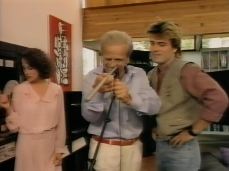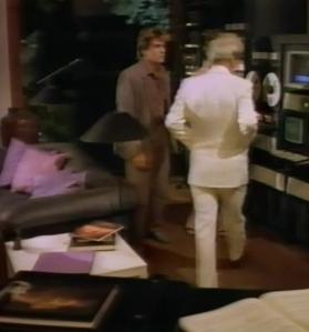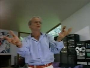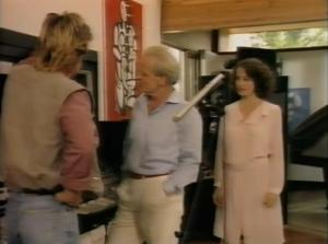 Eric Dunlap – can be summarised as follows: big bad hairdo (a mullet with highlights); ugly footwear (black moccasins worn with white socks); very clingy/needy (he’s had one roll in the hay – well, laundry room actually – with Veronica and he’s already asking her why she’s not yet left her husband); a stereo systems/electronic “whizzkid” (apparently). Eric reckons that his systems are so good because he doesn’t just build them; he “creates” them and “nurtures” them. He builds up his role somewhat (embarrassed about being “the hired help”, maybe?) and hyperbolises his work, saying “It’s like a woman when she gives birth – I give birth.” Erm, no you don’t, Eric! “Then when I’m finished, I, erm, I leave a part of myself behind.” Now, unless he’s impregnating all the housewives whose husbands pay him to “create” and “nurture” and “give birth” to systems for them, I’m not quite sure what he’s supposed to be leaving behind. Apparently, though, it’s a part of his soul. And there was silly old me thinking that he just went to Richer Sounds, bought whatever was on special offer and hooked it all up with a few cables!