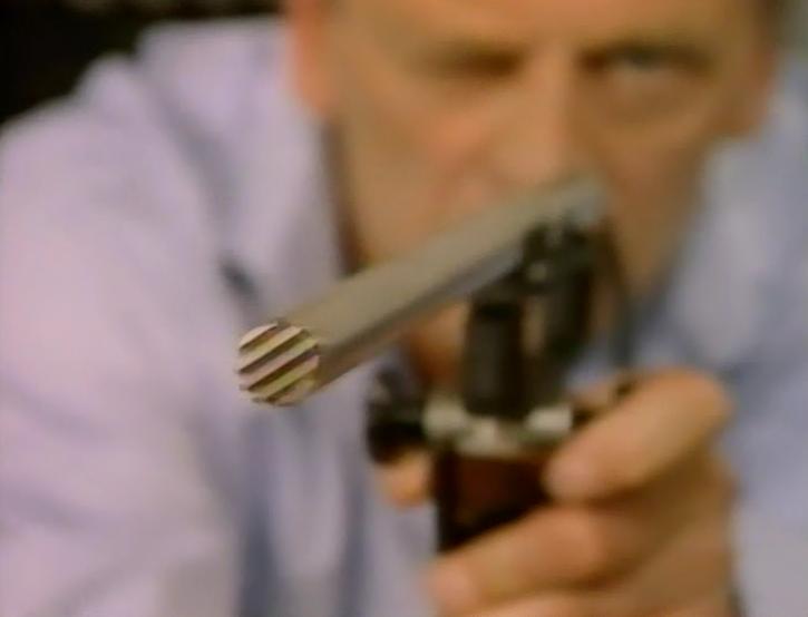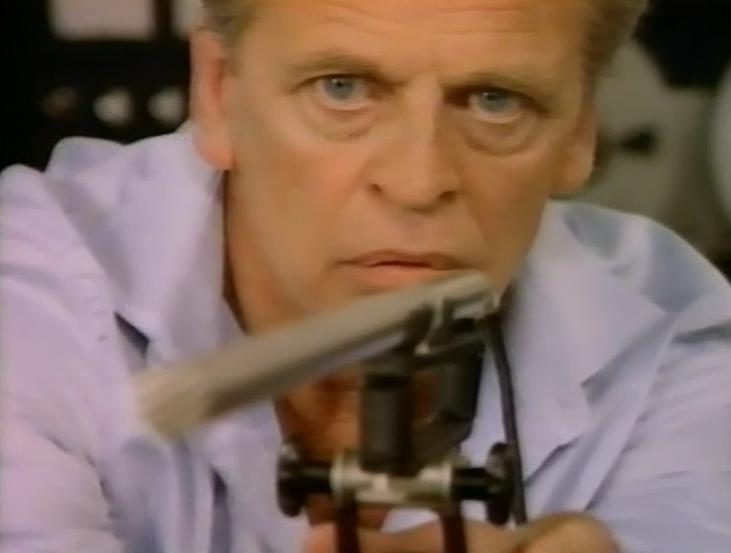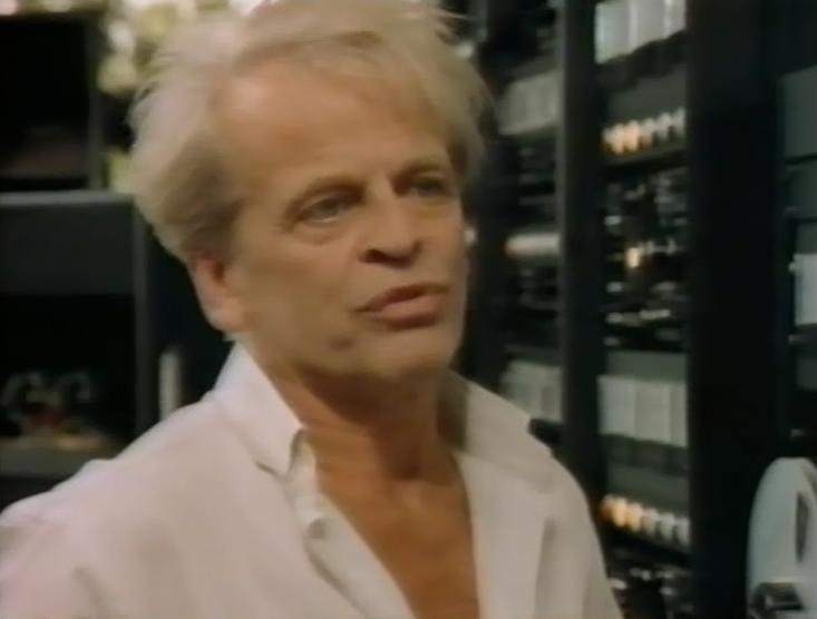 But the storytellers want us to believe that Kurt is evil so they get Klaus Kinski to play him (good move!) and when he’s asked by Eric to pick a number for his log-on, naturally he picks 666. He always gets his way, or so we’re told: “The Maestro always gets his way”; “You’ll get your way, Kurt, you always do.” That doesn’t make him evil as far as I’m concerned but I guess firebombing the boathouse when he discovers his wife and her mullet-haired lover in flagrante delicto possibly does.