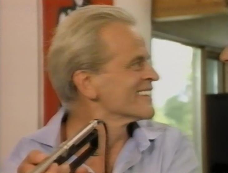 There is also ample opportunity throughout the film for my favourite Kinski-schtick – hands in pockets (Klaus does this whenever he can, ie, whenever he has pockets and whenever he can get away with keeping his hands in them). I love the fact that he manages to keep his right hand in his pocket all the while that he is typing with his left hand: