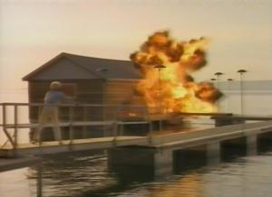 Anyway, going back to the finale – keeping you on tenterhooks, aren’t I? – yes, Kurt sees Eric’s white buttocks through the barred windows and goes bat-s*** crazy, locking the fornicators in the boathouse, spraying the building with gasoline and then setting fire to it. Brilliant! I can’t say they quite deserved that but who’s gonna miss them anyway? He won’t want Veronica anymore as she’s just cuckolded him with mullet man and he doesn’t need the mullet man either as he’s already got the sound system working.
