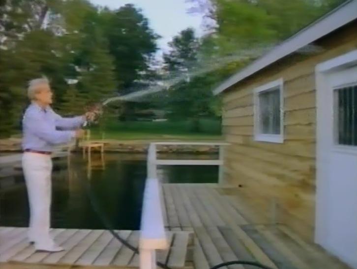 The whole scene leading up to this finale is amazing – Kurt is listening to his music on his new machine, waving his arms in the air as if conducting an orchestra and/or practising boy band dance moves, and then he decides to play around with his directional mic, as you do. Eventually he tunes into Eric and Veronica who’ve been doing the soft-focus David Hamilton love scene stuff in the boathouse and at this point he realises what is happening and he runs like the clappers from the house into the garden and over to the boathouse. My god, I wish I could