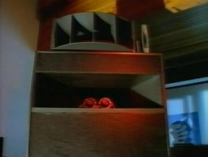 “Baby” / the revolutionary sound system – not a character, strictly speaking, but possibly an entity or some such. “Baby” is a little bugger and won’t work when Kurt tries to log on but this is probably because he refers to the system as his “new toy” and because he is mean to Eric (the birth mum) and calls him incompetent (to be fair, he is though) and he doesn’t have much time for Veronica (to be fair, in his place neither would I). “Baby” is a bit mischievous though as he/she/it (what gender is a stereo system, anyone know?) gives Kurt electrical shocks for getting annoyed when it doesn’t work. I do love the fact that the effects and equipment are so basic though – it looks like a Tandy TRS-80 hooked up to a hi-fi and a shotgun directional mic. And when “Baby” starts working and reacting (ahem! some lights flash on and off, that kind of thing) and voicing Eric’s thoughts (O, Veronica! I love you!), it’s all like a cross between Sparky’s Magic Piano, A Flock of Seagulls and a whale song recording. And Eric must have made a big mistake when he created “Baby” because he/she/it ultimately gives him away to Kurt when he plays around with the directional mic and tunes in to Eric and Veronica’s “love sounds”. O yeah, baby.