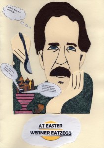 Here’s an Easter card I made for my boyfriend – it’s Klaus Kinski related of course. Happy Easter holidays from Du dumme Sau!