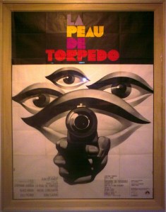 Just a quick update today – a review or two to follow later this week. Yesterday I went over to the Riverside Studios in Hammersmith to check out the Kiss Kiss Kill Kill exhibition of 60s and 70s Eurospy film posters. I was pleased to see Klaus represented with the poster for Only The Cool aka La peau de torpedo; Pill of Death; Children of Mata Hari; Der Mann mit der Torpedohaut (dir Jean Delannoy, 1970). Excuse the quality of the photograph above, but it’s just to give you an idea of how good the La peau de torpedo poster was.