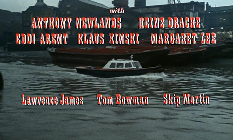Cast: Manfred Hart – Klaus Kinski; Gregor – Christopher Lee; Elliott – Leo Genn; Barberini – Anthony Newlands; Carl – Heinz Drache; Eddie – Eddi Arent; Gina – Margaret Lee; Natasha – Suzy Kendall; Sir John – Cecil Parker; Mason – Victor Maddern; Mario – Maurice Kaufmann; Manley – Lawrence James; Jackson – Tom Bowman; Mr Big – Skip Martin; Red – Nosher Powell