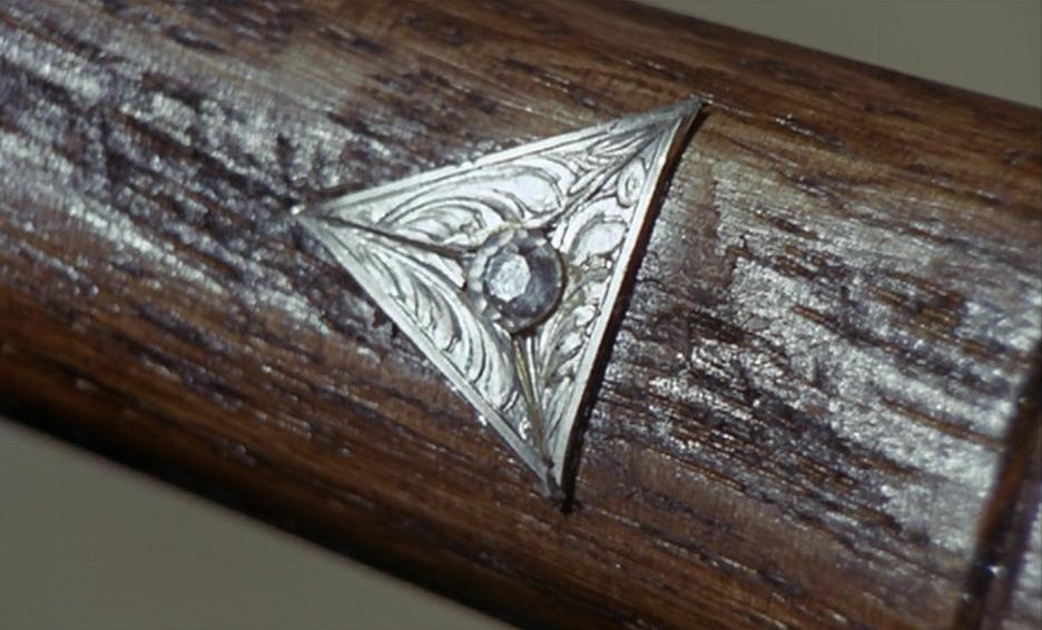 Meantime Mason is approaching The Old Farm, as instructed he disposes of the car and goes on foot to the farm with £250,000 in a suitcase. The Old Farm is dark inside and there are no lights. By torchlight Mason makes out the outlines of some sinister masks and suddenly a wild cat in a cage roars. Naturally Mason realises that something is amiss and tries to flee but a knife in the back puts paid to that. There is a silver triangle on the handle of the knife. A hand reaches out and takes the case – we don’t see the murderer; we don’t know if it’s the mysterious boss or if it is someone else; we don’t yet know the relevance of the silver triangle.
