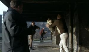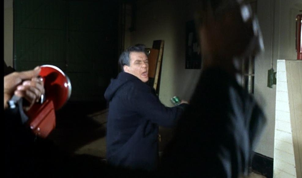 Elsewhere, the gang carry out a post mortem of the crime and Mason is in trouble. Jackson, who appears to have line management responsibilities for the gang, calls the mysterious boss and informs him of Mason’s misdemeanour. Whilst this takes place it should be noted that Manfred is lurking in the background listening in. This is a major theme of the film – people surreptitiously watching and listening, in fact there are so many of them watching in the shadows that I’m surprised they don’t bump into each other! – along with the other theme which is identities or rather uncertainty regarding identity.