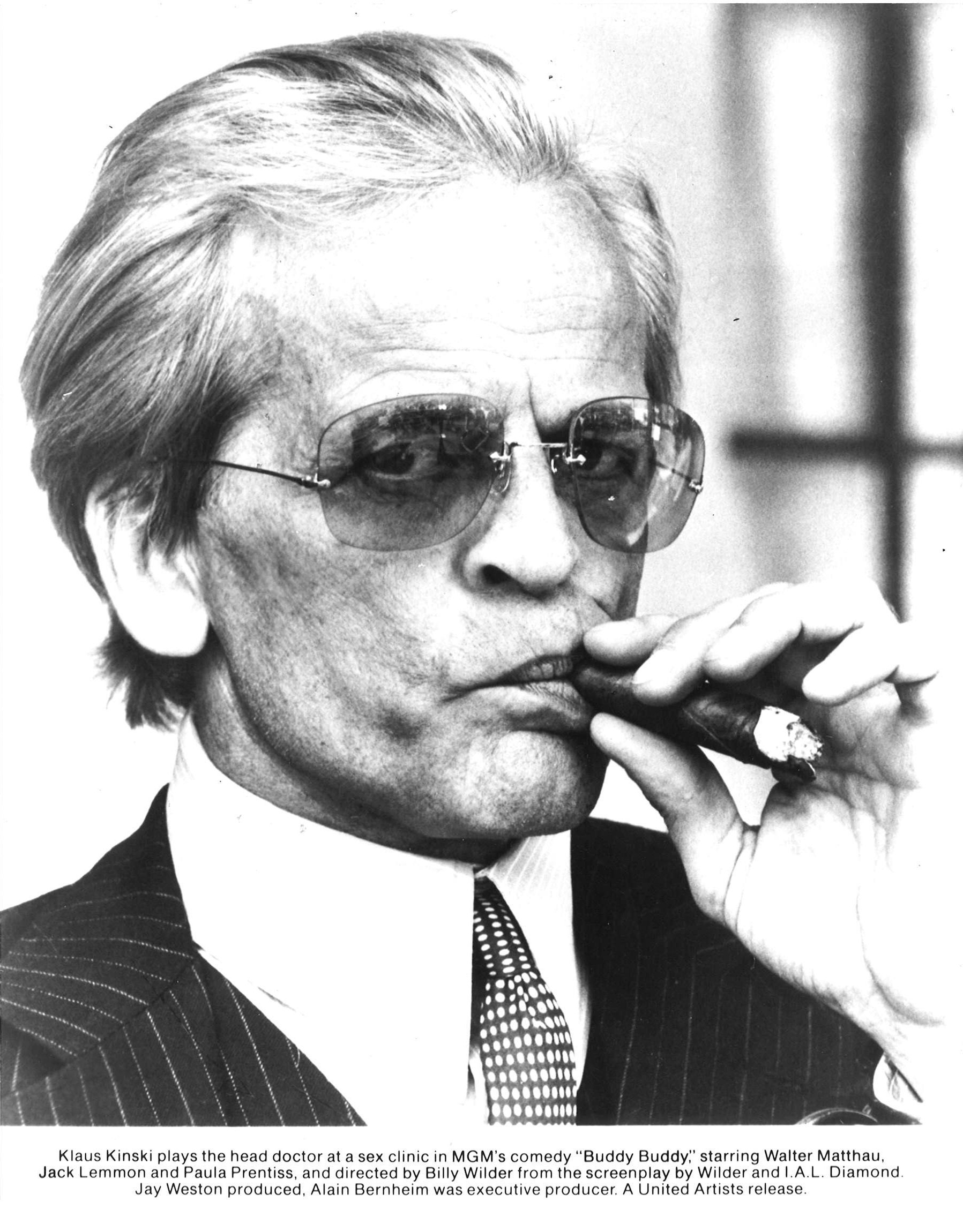 Klaus playing Dr Hugo Zuckerbrot in Billy Wilder’s 1981 film Buddy Buddy.  I’ve not got around to buying / seeing Buddy Buddy yet but it’s bound to make for good viewing with Klaus playing a doctor at a sex clinic; well qualified for the job, I’d say.