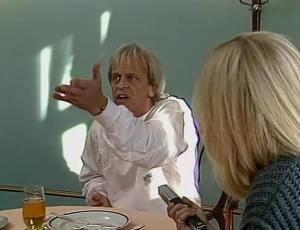 Anyway, it is Hans Leutenegger you have to watch – he’s great. He looks like Bob Carolgees of Spit the Dog fame, but he sounds like Slavoj Žižek (although he is Swiss and not Slovenian). He is very funny – watch him any time the camera moves over to his side of the table, he looks directly into the camera very happily. He seems like a very nice chap and furthermore he is also responsible for my favourite moment of the interview, but more on that later.