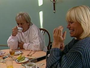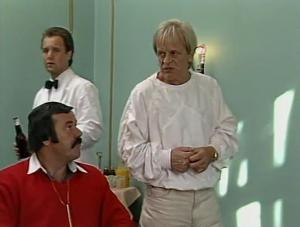 Helga asks about Kommando Leopard but Klaus is having none of it; maybe he had seen the film and wanted to forget it as much as the next person. I’m only guessing… Instead Helga is forced to address what I first thought of as “the red jumper twins”: