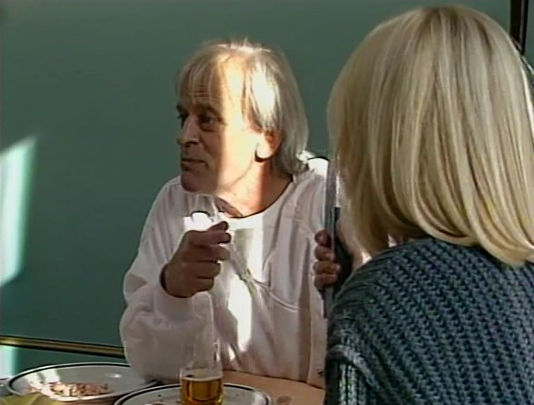 What else? Klaus enjoys his food (see the sandwich eating scene in Creature for another example of this) and he doesn’t seem to care one jot that he is being interviewed – he tucks into a variety of dishes and doesn’t stop eating or drinking for the duration. At one point he appears to spear about 15 prawns on his fork before taking a mouthful. He also seems to order fresh cold beer every time his reaches room temperature. And he doesn’t want any Yugoslavian coffee, only Italian!