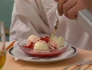 Yummy, yummy, yummy! You’d think he’d tuck in straight away, right? Wrong! He proceeded to play with the dessert for an age, stirring it and chopping at it and then very occasionally taking a mouthful. At one point he got into yet another heated debate with Helga and whilst his attention was drawn away, Mr Hans Leutenegger, aged 45 (aka Herr Forty-Five), took a sneaky spoonful of Klaus’ pudding!
