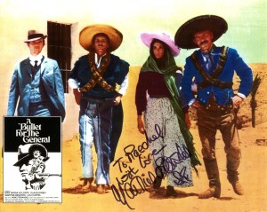 Well, it’s all been happening lately – at the weekend I met the actress Martine Beswick who starred in A Bullet for the General (dir Damiano Damiani, 1966) alongside Klaus. I made my usual request for an interview regarding working with Klaus Kinski &c and, imagine my surprise, but not only did Martine say yes but she also said, “Yes, how about today?”