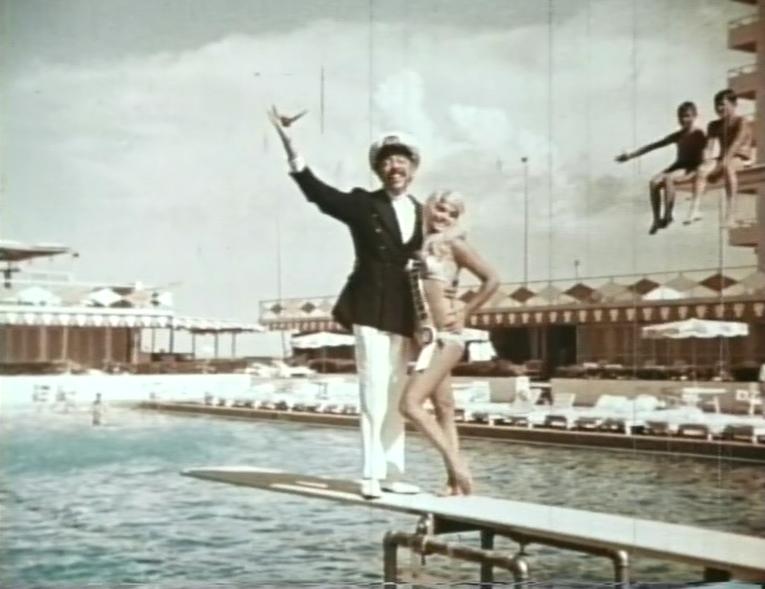 Lynn didn’t know anything about Sam’s deal and thought she was going to be in a film, but it seems this guy just wants to go to Capri and have some fun. So Sam’s taken the money and ran off – wading ashore in his sailor’s outfit, waving his umbrella in Lynn’s direction.