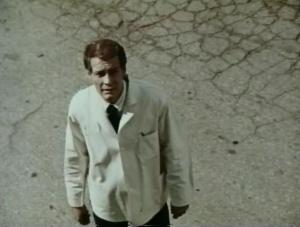 The Maitre d’ tries it on with her in a rowing boat, forcing her to jump in the water to escape his attentions: