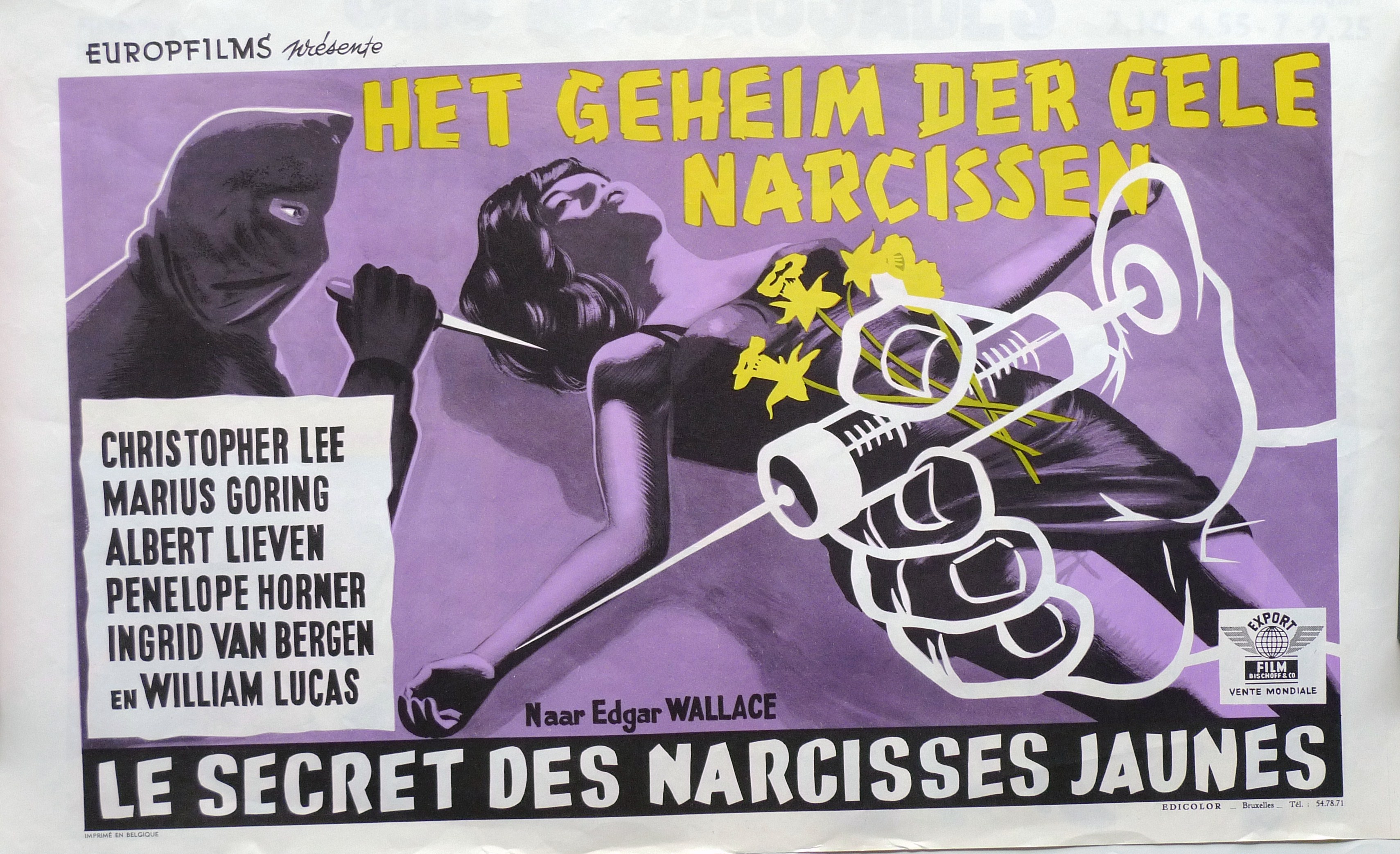 This poster is for Das Geheimnis der gelben Narzissen (aka The Devil’s Daffodil) (dir Ákos Ráthonyi, 1961). Klaus is not mentioned on the poster and I know there were both German and English language versions of the film, but I’m not quite sure whether this Belgian poster is for the German or English version. In any case, it’s of interest as it’s Klaus related and the artwork is excellent.