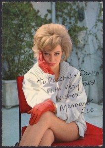 Thanks, Mike. It wasn’t too hard to track Margaret Lee down but I did have to convince her that she could trust me not to write anything (or include photos of anything) she wasn’t keen on seeing online. It’s understandable, of course, if you’re no longer in the business. But she has a lot to be proud of (and not just the fact that she is beautiful), although she doesn’t necessarily see it that way. It’s quite difficult when someone doesn’t like certain parts of their career and you want to talk to them about it because you do see the value in it. I am very lucky to have the signed photo and it’s a prized possession :0). Thanks for visiting the blog!