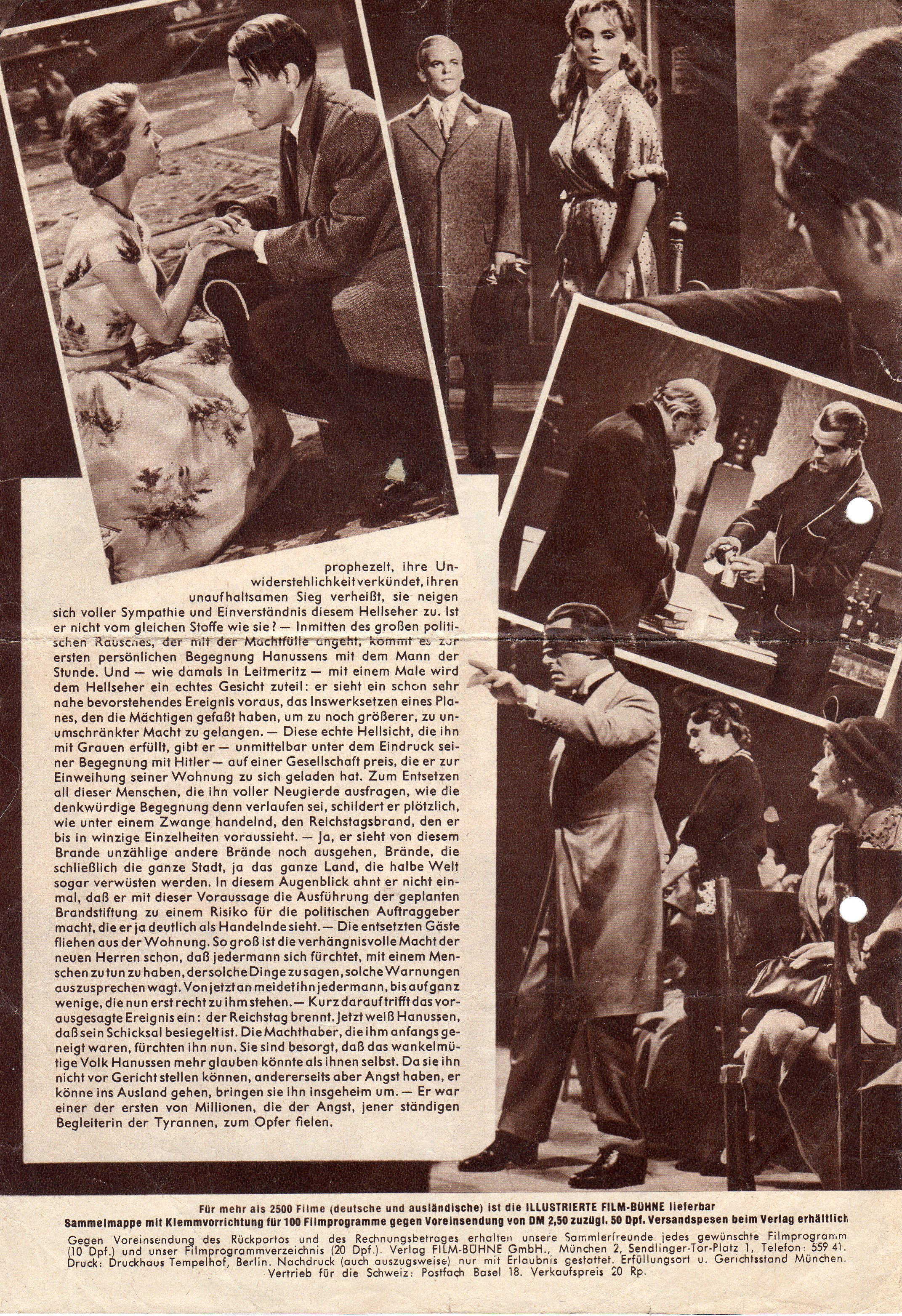 Hanussen, Dir O W Fischer and Georg Marischka (1955). I’ve not yet got or seen this film but Klaus looks quite lovely in the pictures in this film programme so it’s on my list of wants.