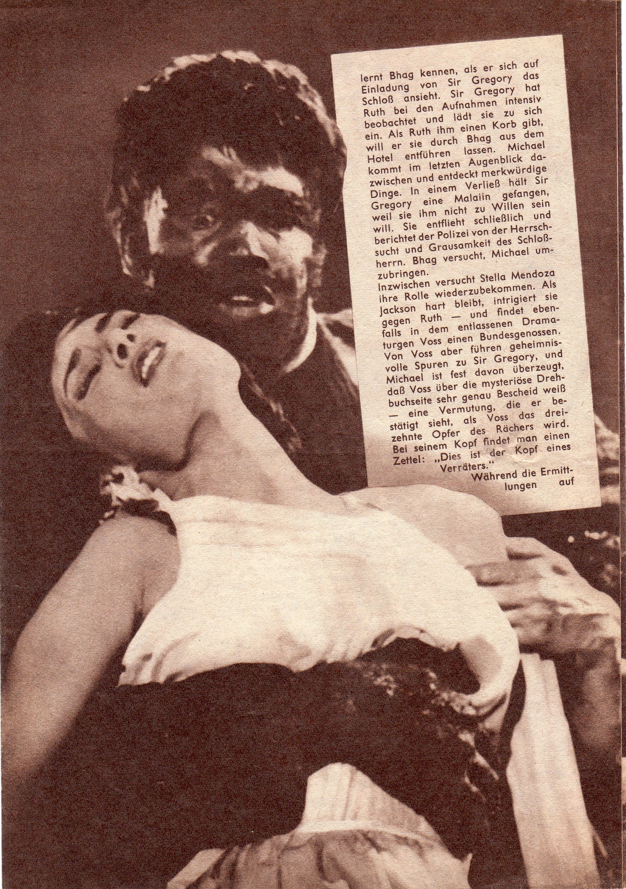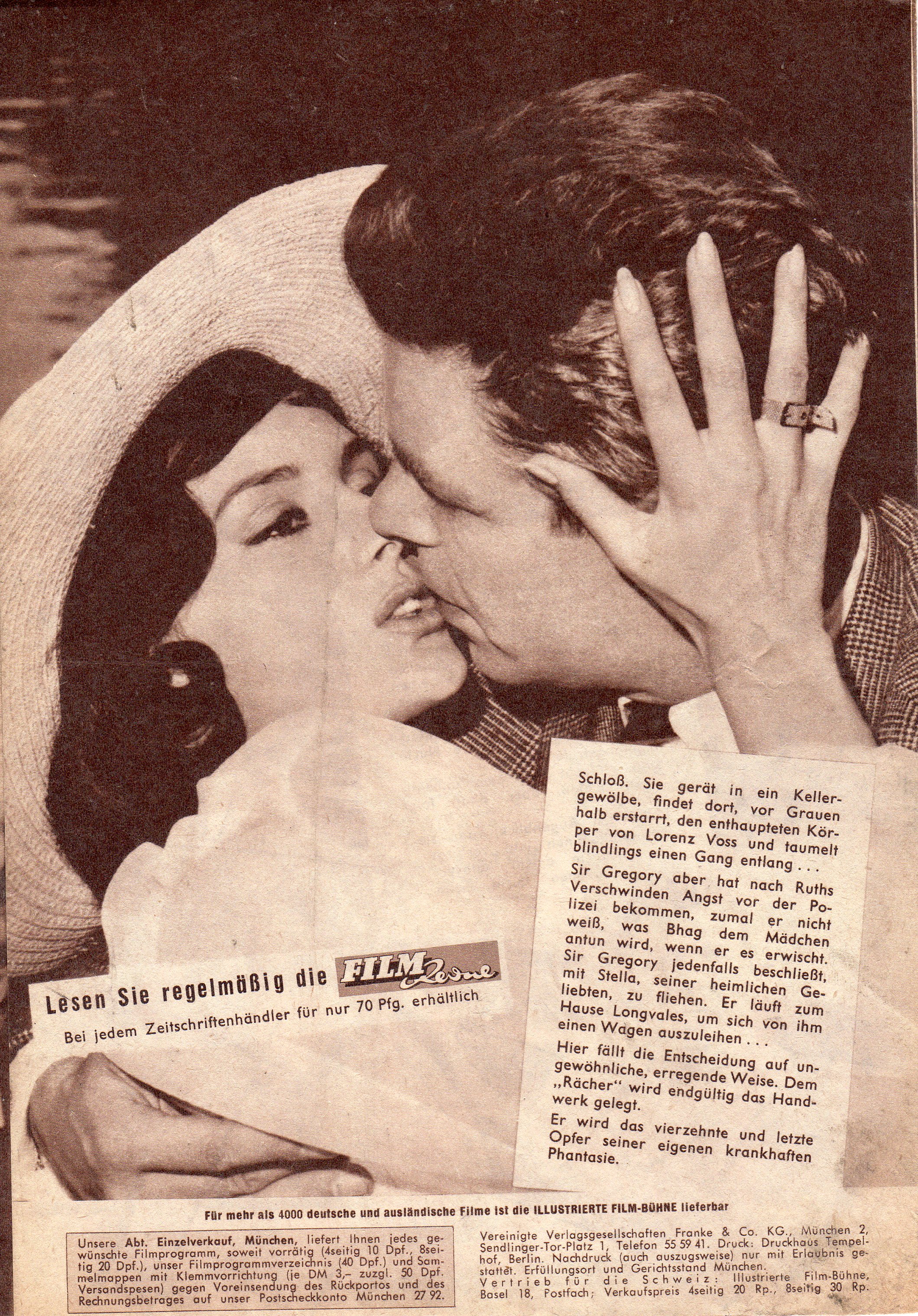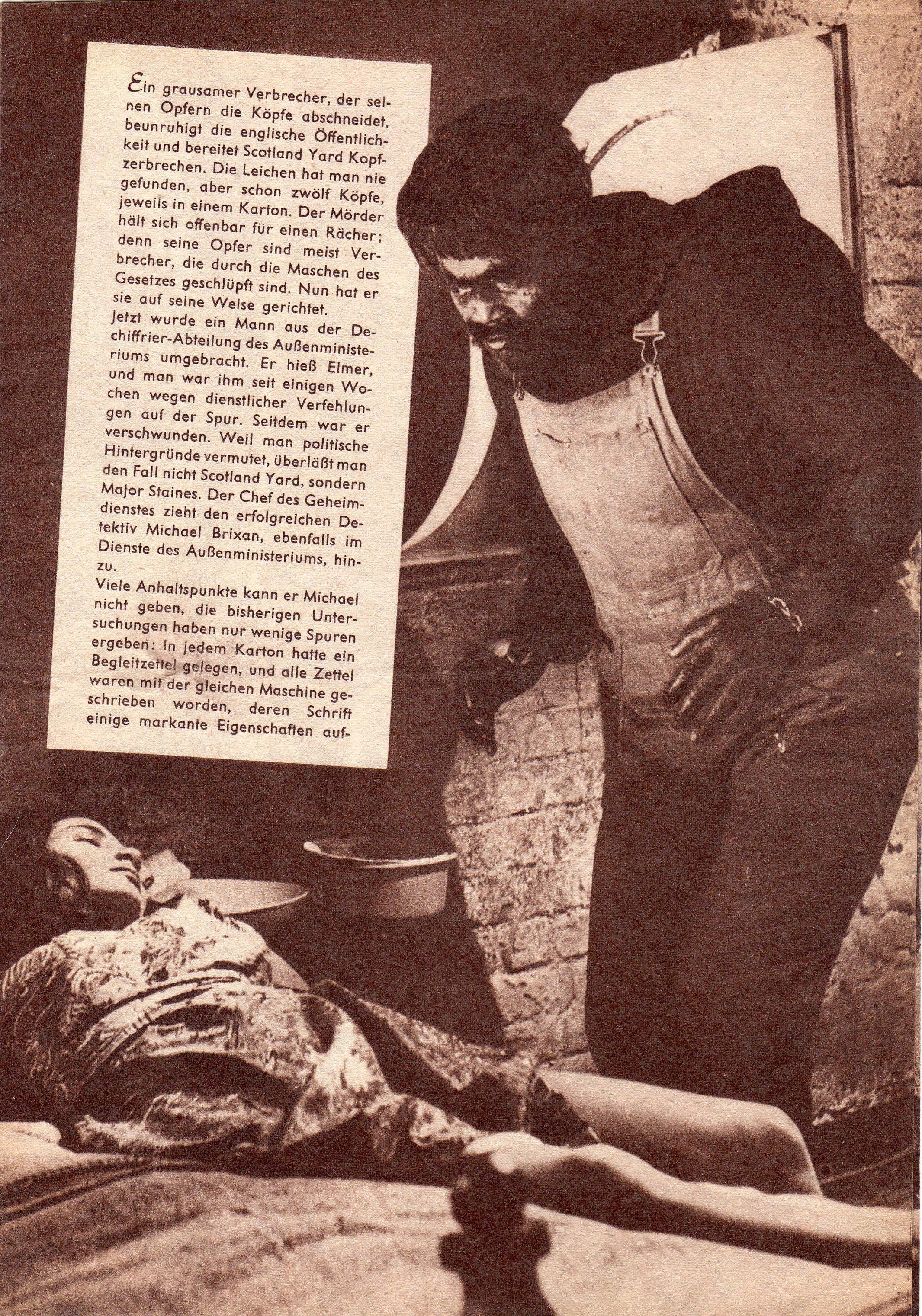 Der Rächer, dir Karl Anton (1960). No pictures of Klaus here, I’m afraid, but plenty of stills from the film and lots of information. Again, this is a film I don’t yet have. I had hoped to find loads of these Film Bühne movie programmes in Berlin and although I saw quite a lot they were mostly for classical Hollywood cinema, which was both a surprise and a disappointment really. Never mind, there is always next time.