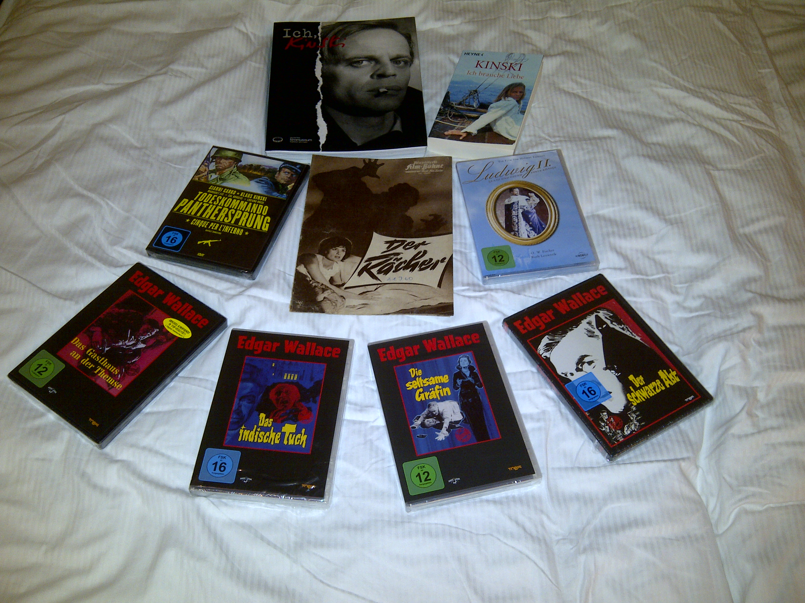 Unfortunately upon opening the DVDs when I got back to the UK I found that some idiot at the film distribution company has put the wrong DVD in the Das indische Tuch box and they have tried to palm me off with a copy of some s***ty Harry Potter film instead of the Edgar Wallace film I wanted. I am trying to get that sorted out with Tobis and Rialto now; I shall be moaning about it if they don’t sort it out for me as I wouldn’t watch a Harry Potter film, even if I was paid. Unless Klaus was in it, of course, and he isn’t so what’s the point in that?!