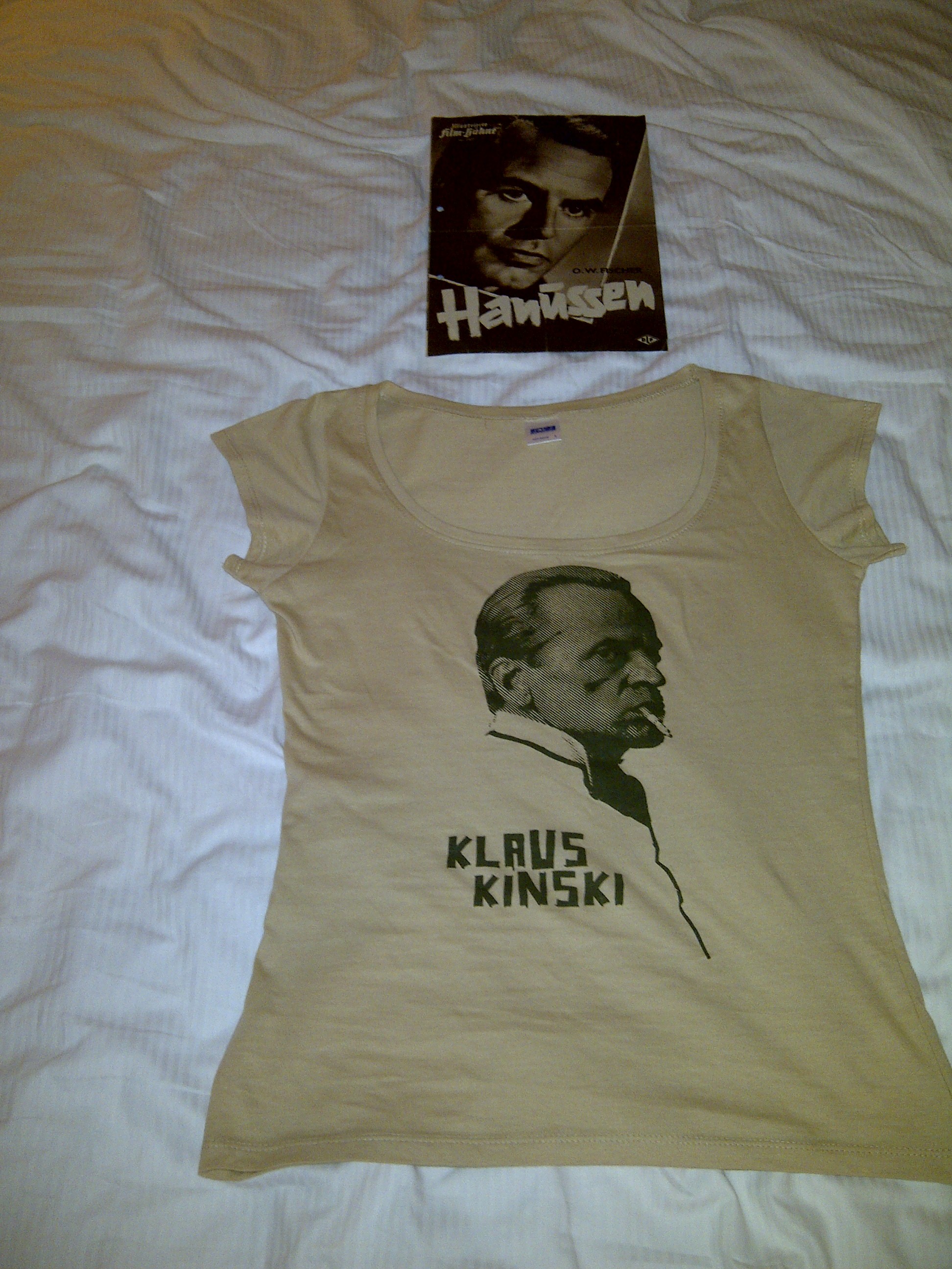 I found this great (but no doubt unofficial) Klaus Kinski t-shirt on one of the flea markets as well. Looks very much like a Beat Presser Paris photo to me but I doubt very much Beat will be seeing any money from this purchase somehow!